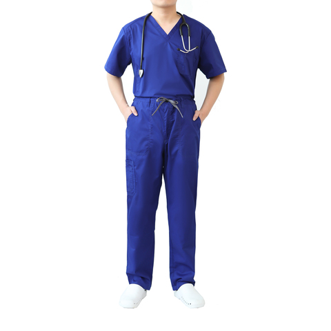 ชุดสครับสำหรับบุรุษและสตรีชุดยูนิฟอร์มผ้าโพลีเอสเตอร์100% และกระเป๋ามีซิปสำหรับโรงพยาบาล